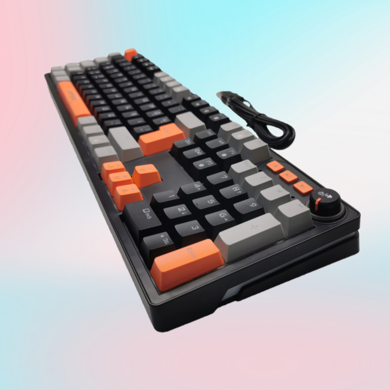 TK104 Wired Side Lighting Mechanical Game Keyboard With Multimedia Knob